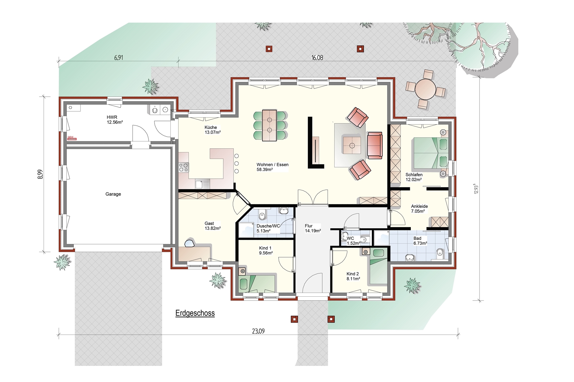 Wohnfläche: Erdgeschoss: 162.15 m² Dachgeschoss: —— Gesamt: 162.15 m² Grundfläche: Wohnhaus: 186.42 m² Nebengebäude: 58.40 m² Gesamt: 244.82 m² Gebäudemerkmale: Walmdach mit 30° Grad Dachneigung Großzügiger Wohn-, Essbereich Separates Badezimmer Grundriss / Typ Westerbork Haben wir Ihr Interesse geweckt? Gerne erstellen wir Ihnen ein unverbindliches Angebot. Angebot anfordern!